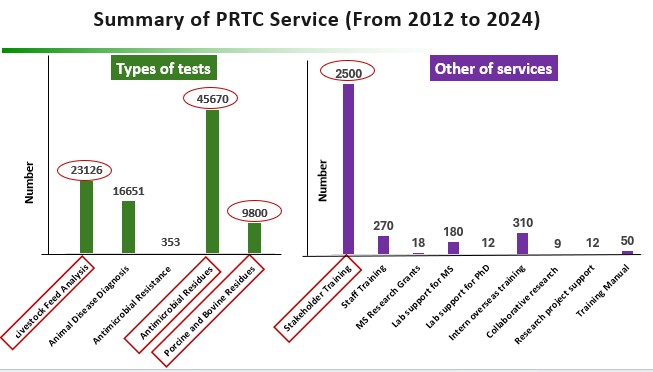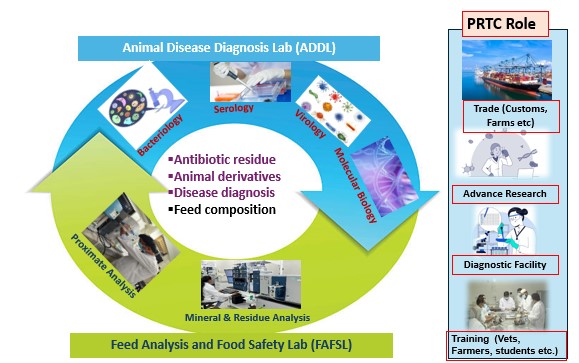 PRTC laboratory started its journey on 10 January 2012 providing laboratory services to different stakeholder from Animal Diseases Diagnostic Laboratory (ADDL) and Feed Analysis & Food Safety (FA&FS) Laboratory.